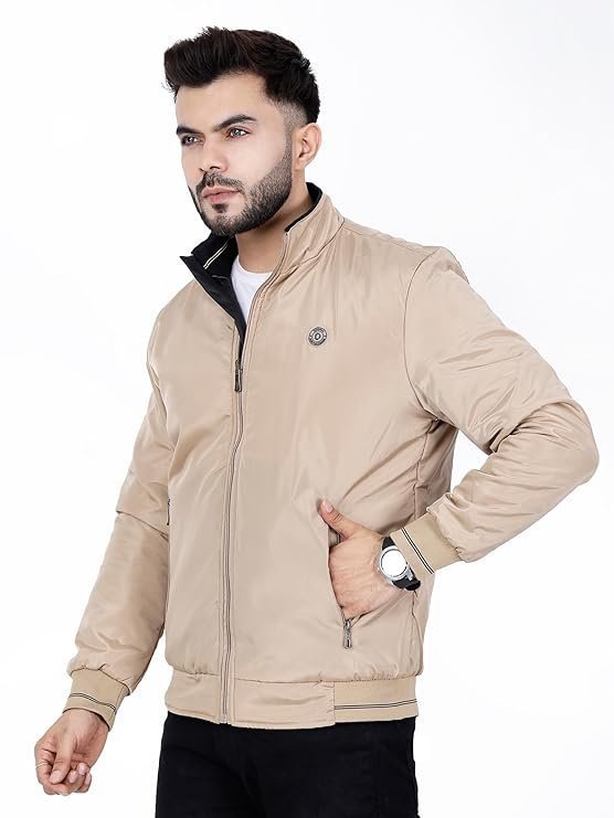 Full Sleeves Bomber Jacket for Men, Beige