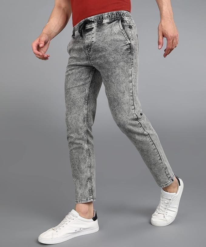 Stylish & Trendy Towel Washed Dark Blue Jogger Jeans – Elasticized Waistband with Drawstring