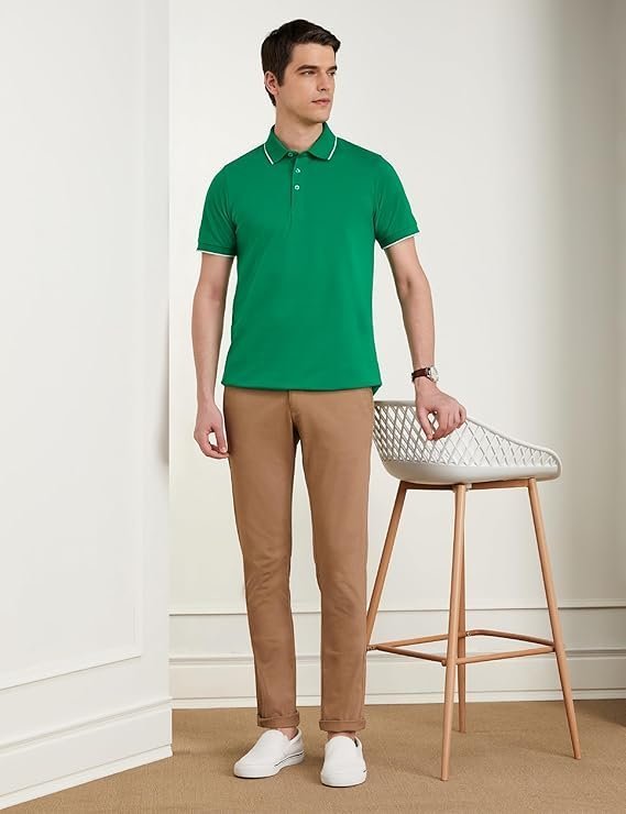 Men’s Cotton Stretch Solid Polo T-Shirt, Green