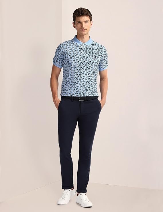 Men’s Floral Fitted Polo Shirt, Light Blue