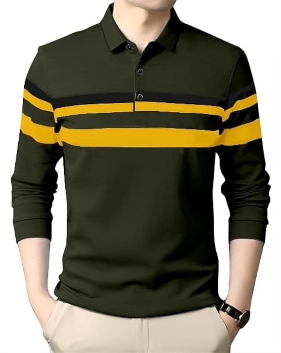 Men’s Polo T-Shirt Full Sleeves, Black/Yellow