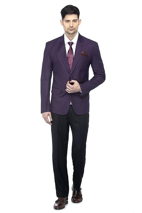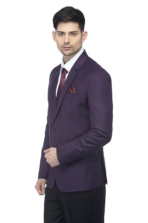 Men’s Slim Fit Notched Lapel Single Breasted Solid Blazer, Dark Purple