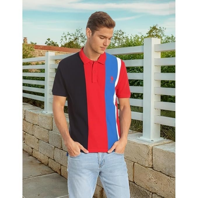 Men’s Solid Regular Fit T-Shirt, Red/Blue/Black Combination