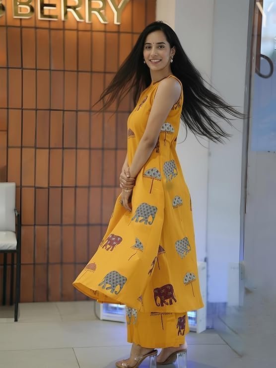 1 Kurta 1Pant || Work :- Printed || Neck Style:- High-Neck||Care instructions : Dry Clean Only
