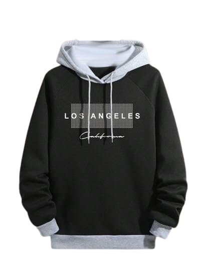 Regular Fit Printed Hoodie for Men, Black/Grey