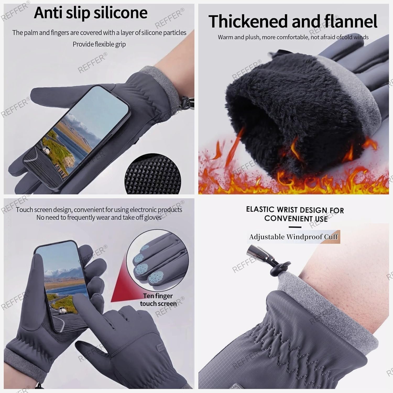 These winter waterproof ski gloves are made with ski-friendly waterproof fabric outside, soft, cozy and dense fleece lining inside. The adjustable cozy cuff can be fastened to block cold wind and ice.